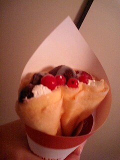 お昼のデザートは最近石山商店街にオープンしたクレープ屋さんのミックスベリーのクレープ♪