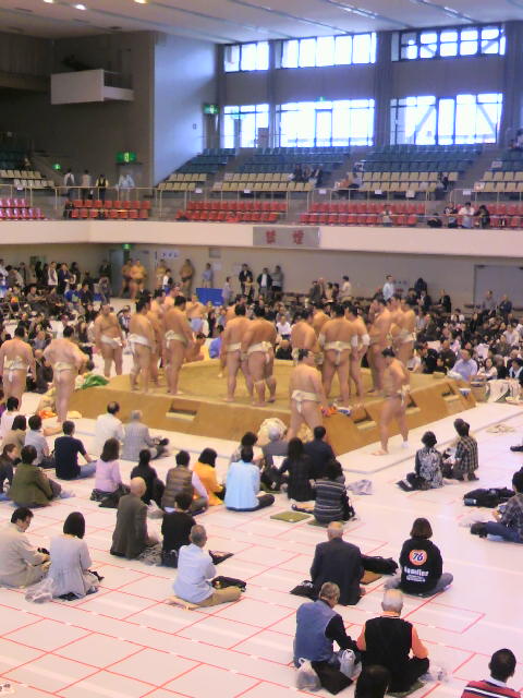 滋賀県立体育館にて、横綱白鵬をはじめ、大関の(日馬富士・琴欧洲・把瑠都)など有名な力士の大相撲や、禁じ手を面白くした初切を観戦することができました♪